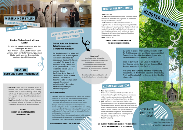 Hier finden Sie vielfältige Möglichkeiten, sich mit unserer Gemeinschaft zu verbinden und das Klosterleben kennenzulernen. Egal, ob Sie als Oblate auf der Suche nach spiritueller Vertiefung sind, eine Bachelorarbeit in Ruhe schreiben möchten oder als junge Frau Interesse an einem Leben im Kloster haben – wir heißen Sie herzlich willkommen.