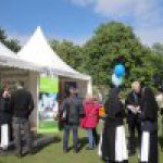 Beatrix Rustler hatte den Stand am Donnerstag morgen zusammen mit Ursa Pilz eingerichtet. Der Pavillon und das Info-Material waren mit einem Stadtbauhof-Auto nach Regensburg gebracht worden. Beatrix Rustler ist froh, dass der Informations-Pavillon mit einem Boden ausgestattet war: Der Rasen auf dem Stellplatz war nach dem Dauerregen völlig durchnässt und recht matschig.