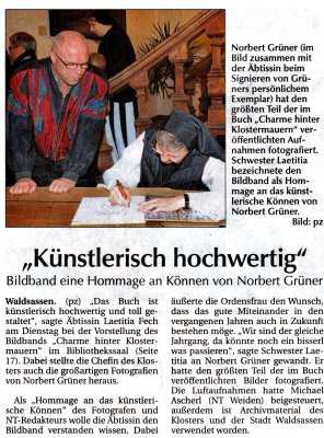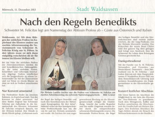 Das Interview mit der Äbtissin Laetitia Fech OCist ist im Rahmen der Serie "Werte und Wirtschaft" ist nun am vergangenen Mittwoch in der Gesamtausgabe der "Frankenpost" veröffentlicht worden