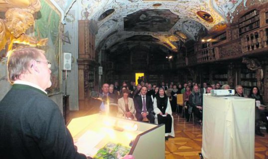 Die Erläuterungen von Äbtissin Sr. M. Laetitia Fech erklären die Präsentation, vor der die Besucher anfangs zwar bewundernd, jedoch ein wenig ratlos stehen: Eine umfangreiche Bilderausstellung eröffnete den Veranstaltungsreigen zum 150-jährigen Bestehen des Frauenklosters in Waldsassen.