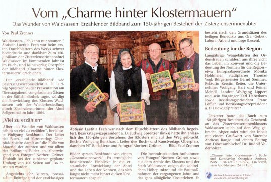 Groß gefeiert wird in gut vier Wochen das 150-jährige Bestehen des Frauenklosters. Einen Höhepunkt der Feierlichkeiten, in deren Mittelpunkt der Zisterziensertag am 17. Mai stehen wird, bildet das Waldsassener Spiel "Charme hinter Klostermauern".