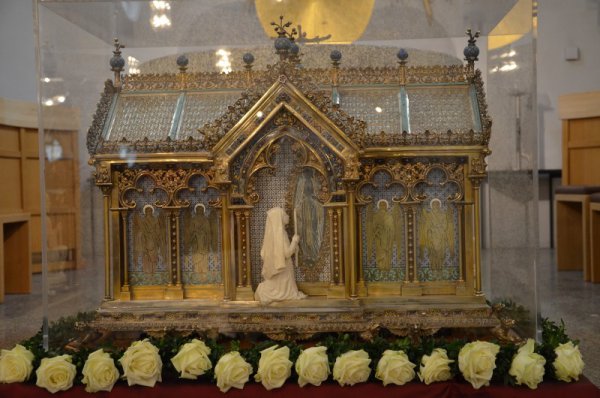 Der Schrein mit Reliquien der Heiligen Bernadette ist am Freitag nach Waldsassen in die Klosterkirche gebracht worden.