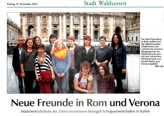 Zehn Schülerinnen der Mädchenrealschule der Zisterzienserinnen-Abtei fahren in Begleitung von Schulleiterin Kerstin Reiter und Fachlehrerin Michaela Mark nach Rom....