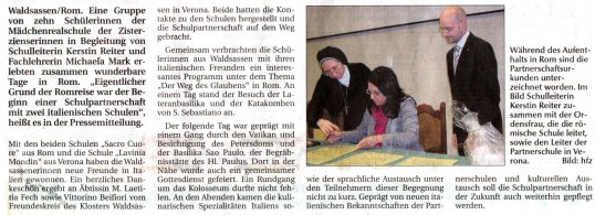 Mädchenrealschule der Zisterzienserinnen besiegelt Schulpartnerschaft in Italien.